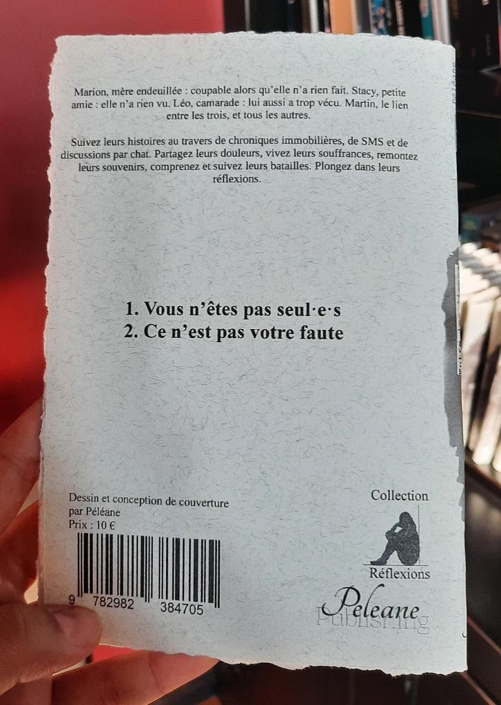 As a reminder, the summary:«Marion, grieving mother: guilty even though she did nothing. Stacy, girlfriend: she didn't see anything. Leo, classmate: he too has lived too much. Martin, the link between the three, and all the others.Follow their stories through real estate columns, text messages and chat discussions. Share their pain, experience their suffering, recall their memories, understand and follow their battles. Dive into their reflections.»